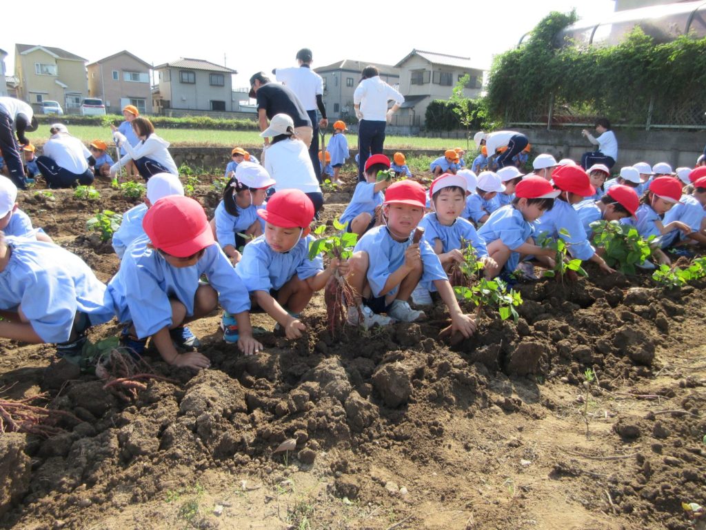 丸い形や細長い形など、いろいろな形のさつまいもを見つけては、「こんなのが出てきたよ!!」と