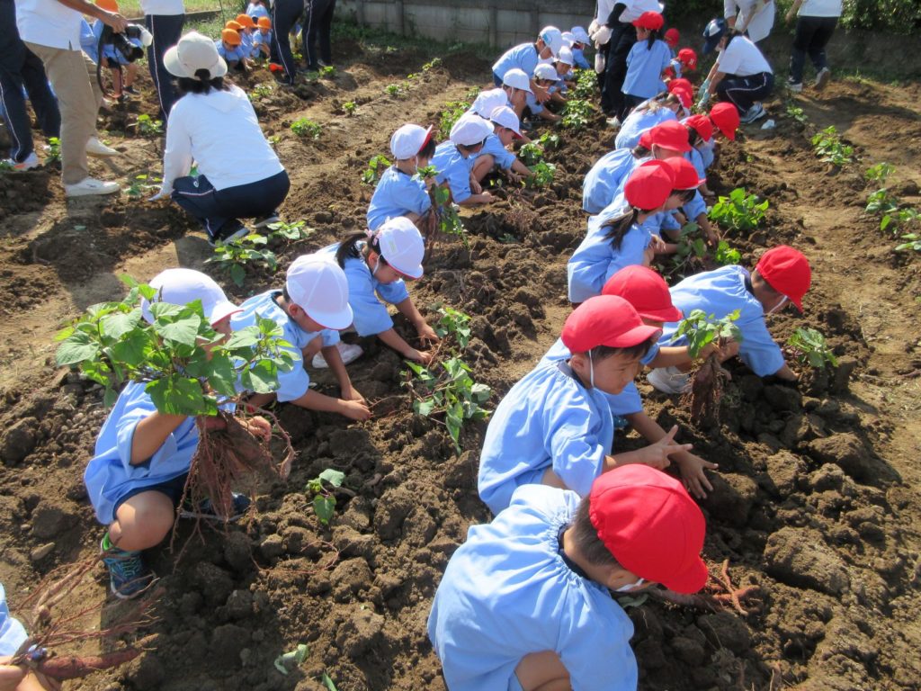 丸い形や細長い形など、いろいろな形のさつまいもを見つけては、「こんなのが出てきたよ!!」と