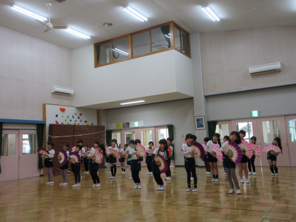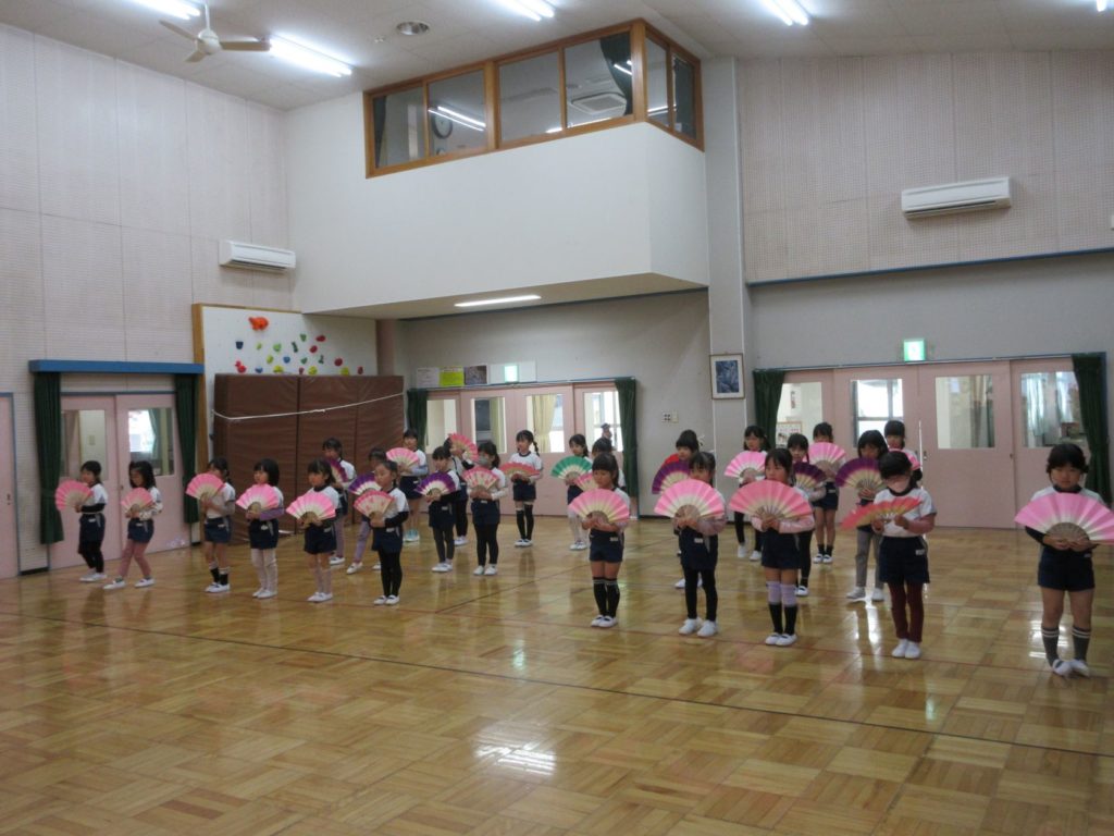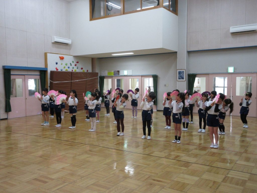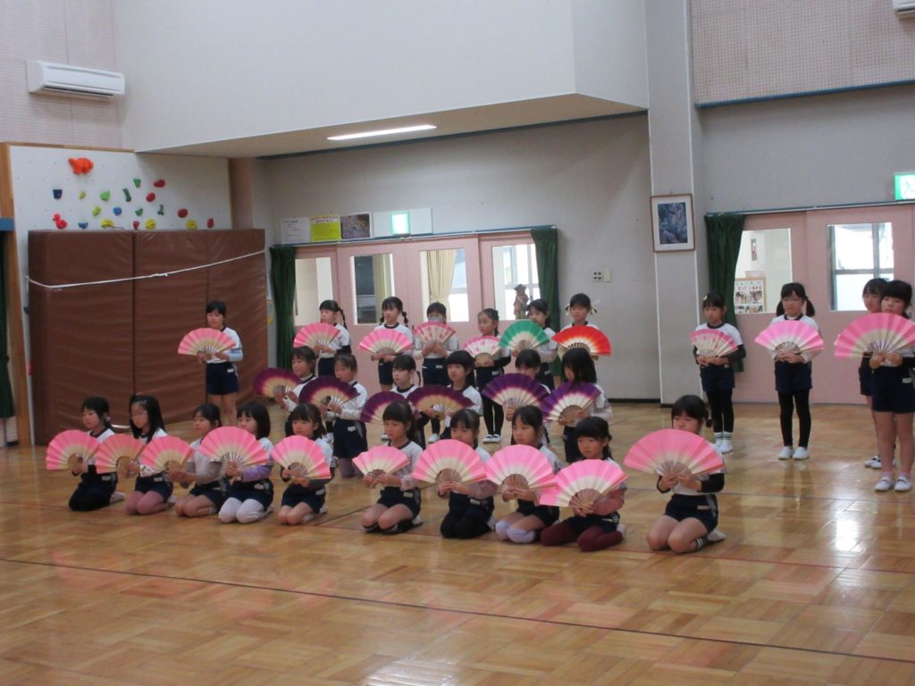 最後に、きりん組の女の子は扇子をもって、「うれしいひなまつり」を歌に合わせて披露してくれました。