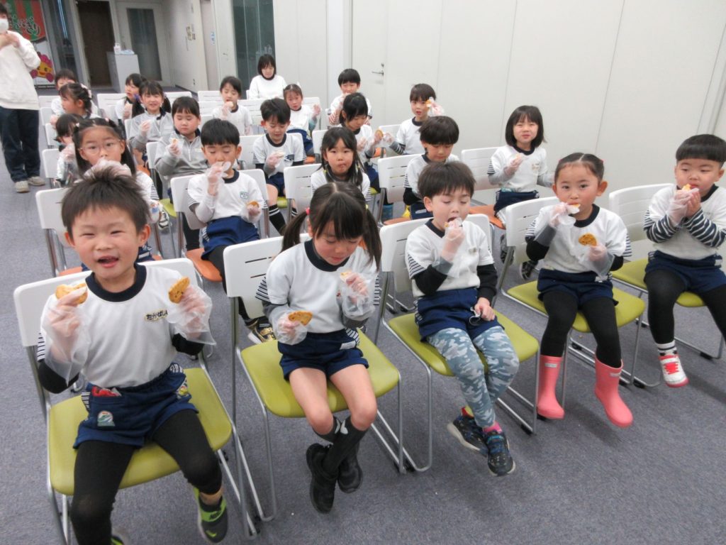 DVDが終わると、今朝出来上がったばかりのおにぎりせんべいを、みんなで美味しくいただきました。