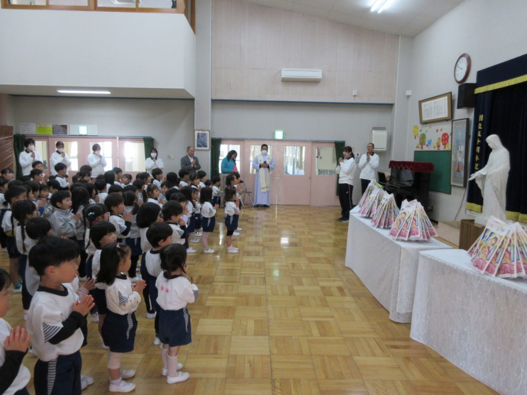 今日は神父様が来て下さり、七五三の祝福をして頂きました。