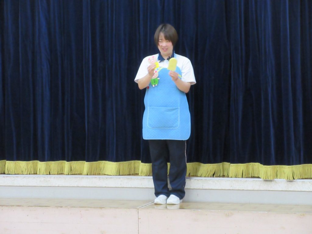 先生からのプレゼントはエプロンシアター「3匹のこぶたのお母さんの誕生日」でした!