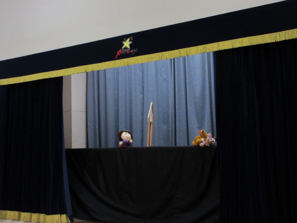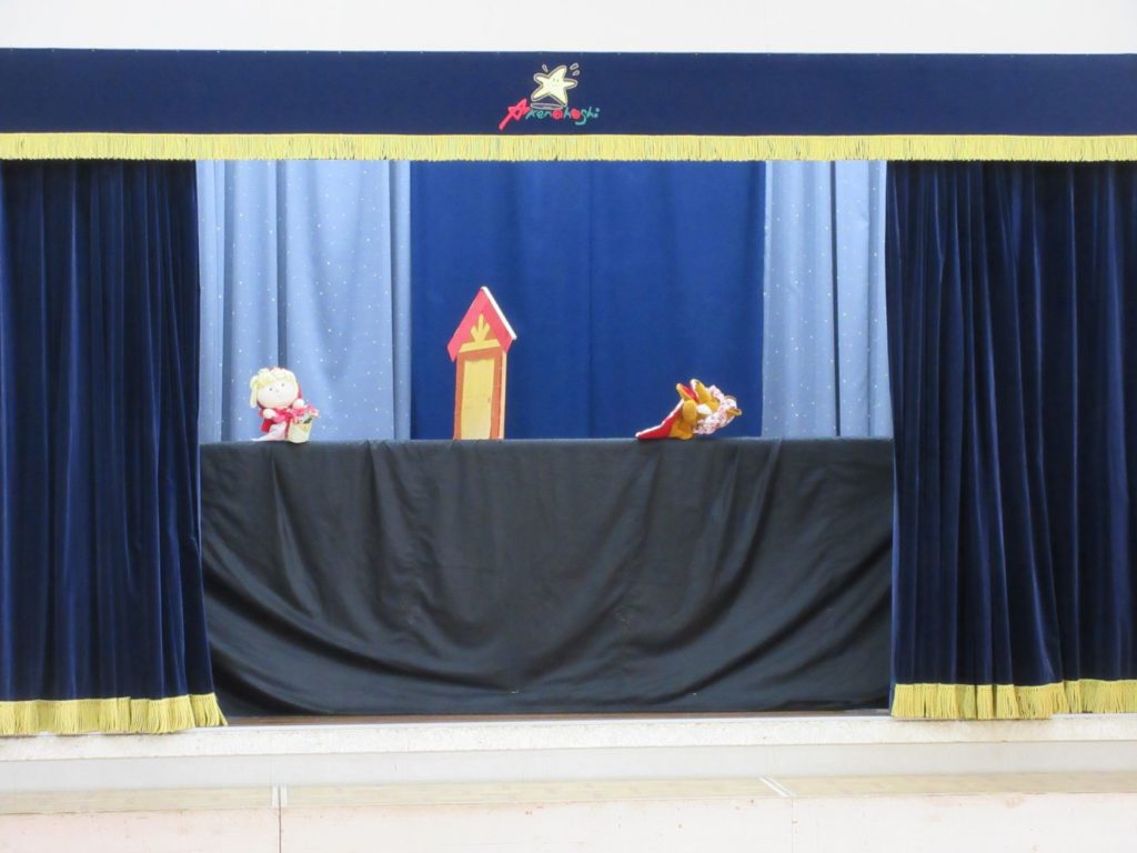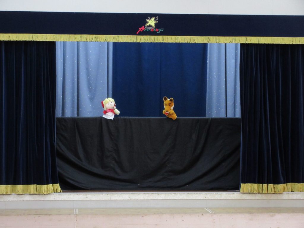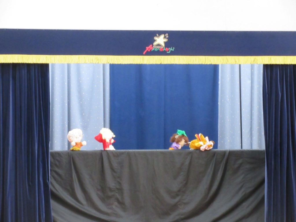 先生たちからのプレゼントは人形劇「赤ずきんちゃん」でした。