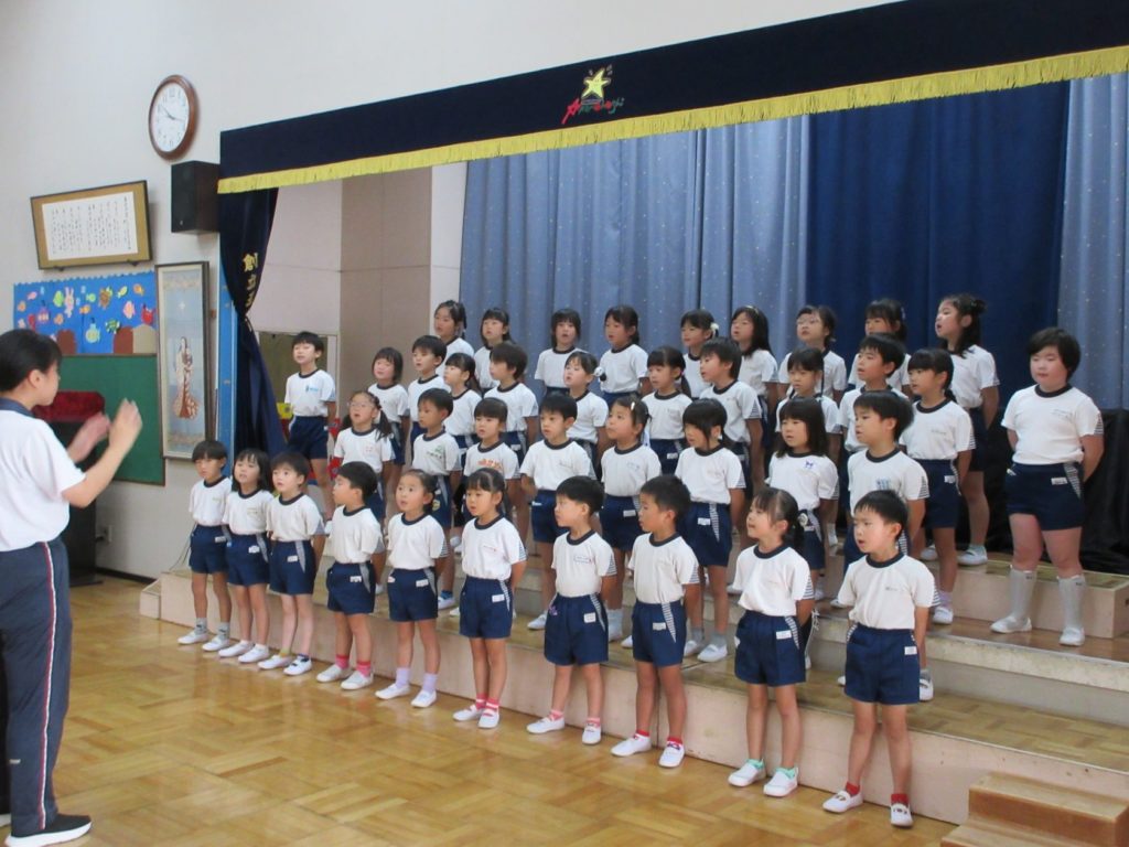 園長先生からお祝いの言葉をいただき、8月生まれのお友だちは、元気に名前と何歳になったかを発表してくれました。