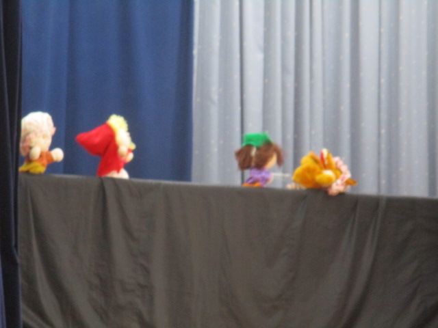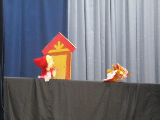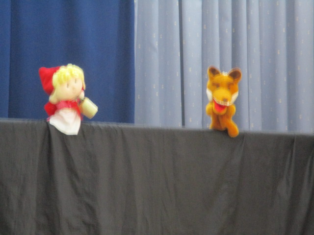 先生たちからのプレゼントは、人形劇「赤ずきんちゃん」でした。