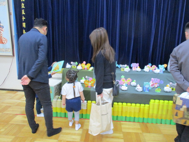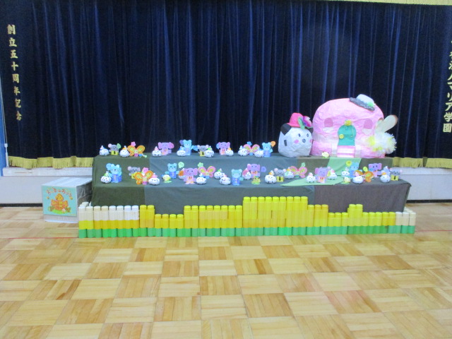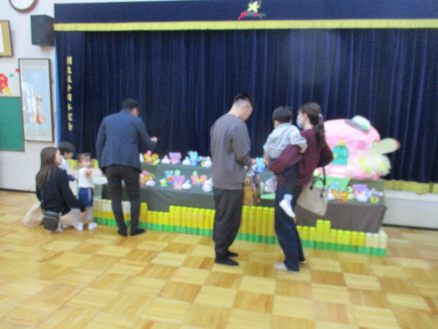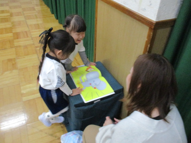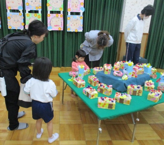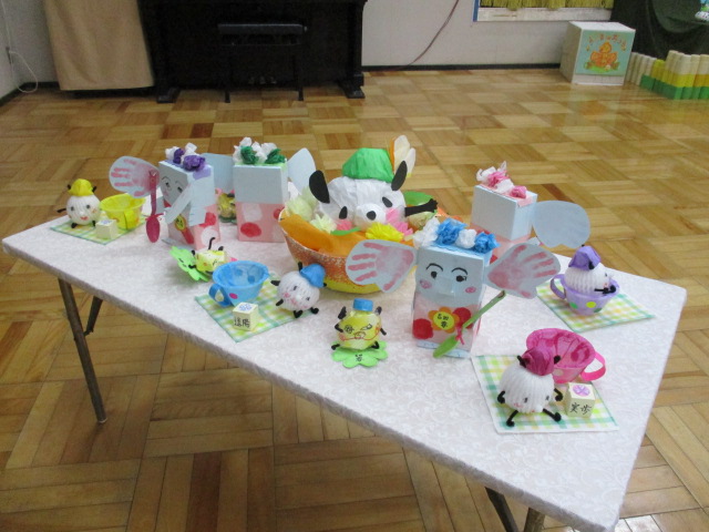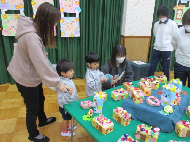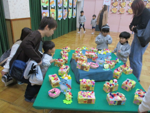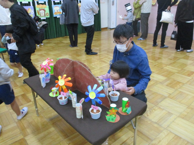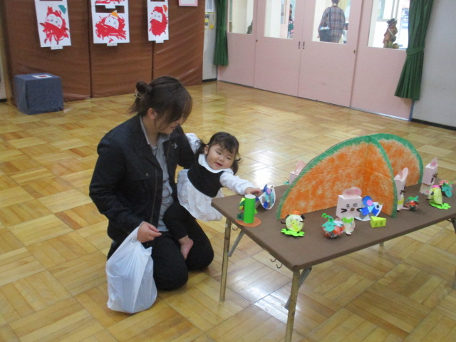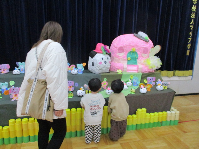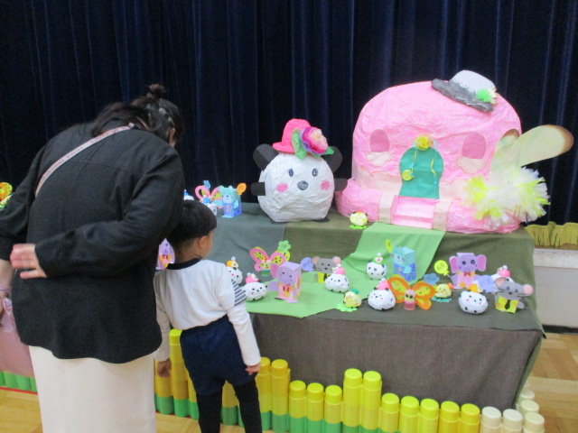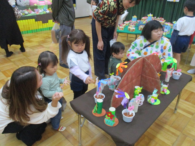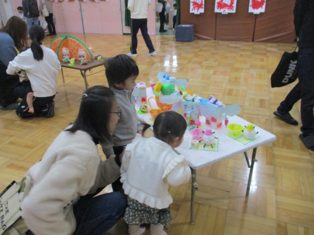 何度も作品を見に来てくれたり、絵本に興味を示してくれたり、楽しい時間を過ごしていただけたように感じました。大きいクラスの子どもたちも、0~2歳児クラスの作品に関心を寄せてくれたことも嬉しく思いました。