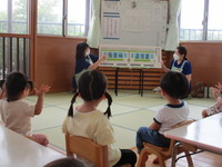 ひまわり組さんでも、子供たちがよく知っている「いーとーまきまき」の手遊びをしてもらって
